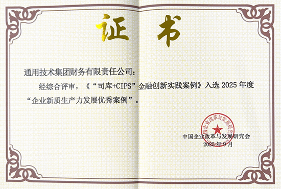 近日,中国企业改革与发展研究会正式发布了“2025企业新质生产力发展优秀案例”评选结果,通用技术财务公司报送的《“司库+CIPS”金融创新实践案例》成功入选。